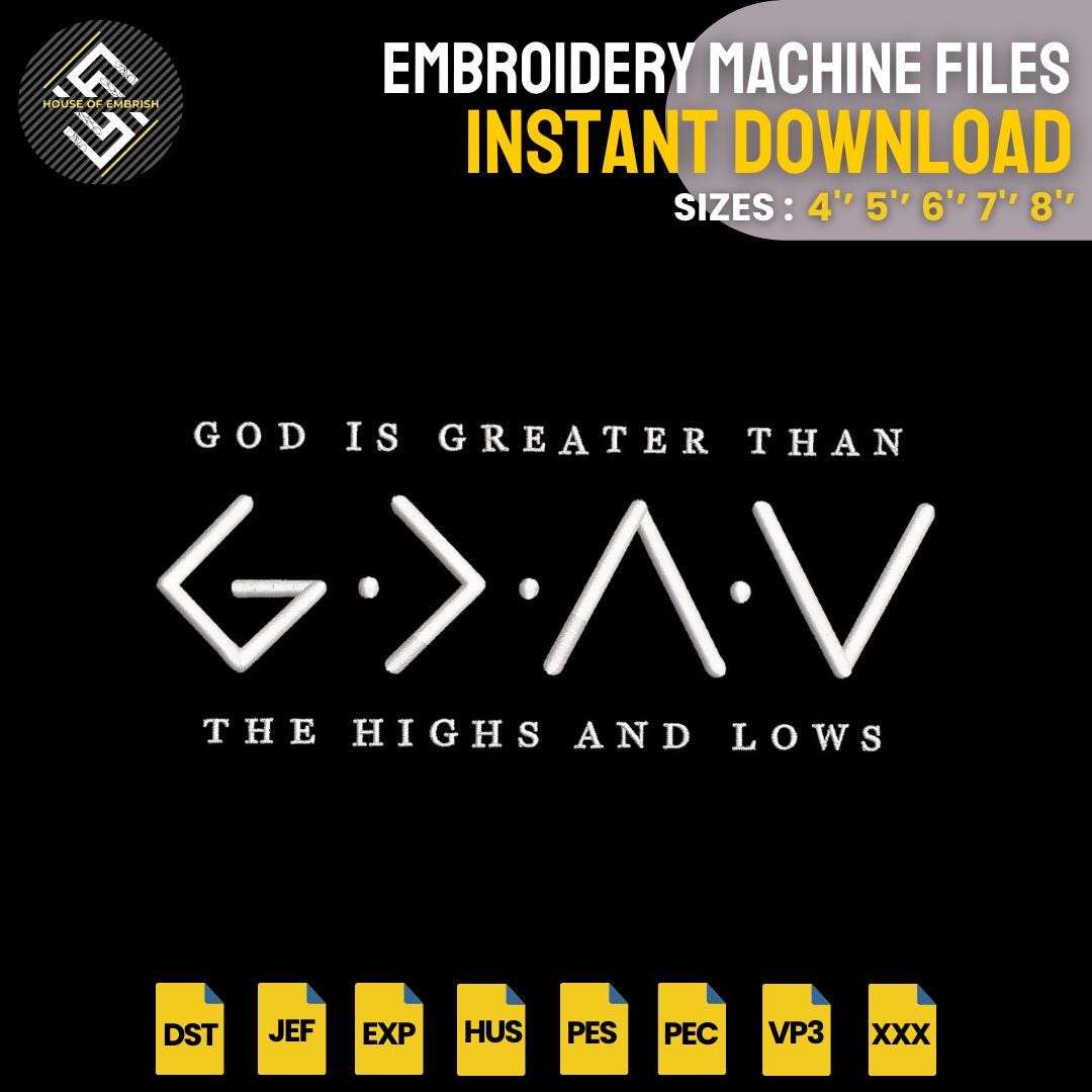 ✨ God Is Greater Than the Highs and Lows – Christian Embroidery Design (Digital File)