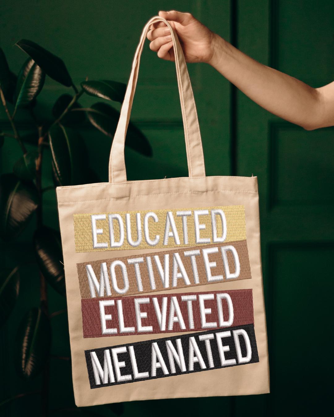 ✨ Melanated – Educated • Motivated • Elevated Embroidery Patch Set (Digital Machine File)