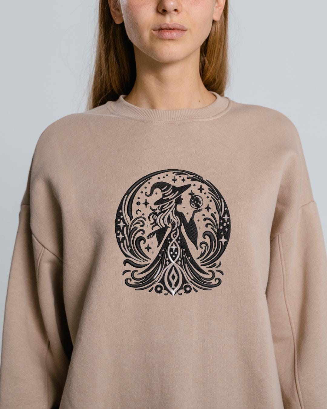 ✨ Mystic Witch Moon Embroidery Design – Digital Machine File