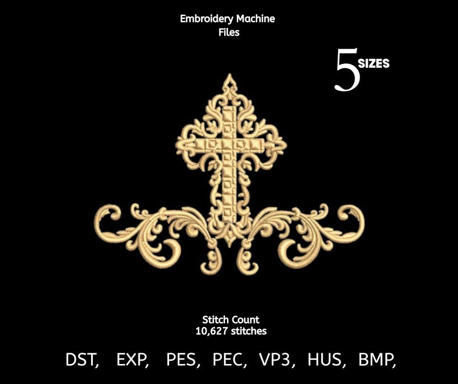 Bring elegance and meaning to your next project with this beautifully detailed ornamental cross embroidery design. Perfect for Christian gifts, church linens, baptism items, altar cloths, home décor, and vintage-style embroidery projects.