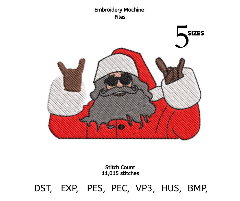 Featuring a cool Santa wearing sunglasses and throwing rock hand signs, this design adds a fun, modern twist to classic Christmas stitching.