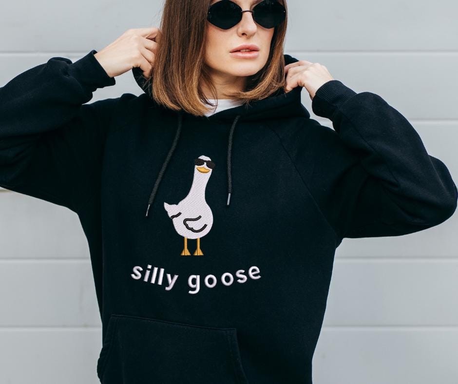 Add fun and personality to your projects with this Silly Goose Embroidery Design, featuring a cool cartoon goose wearing sunglasses and a playful “silly goose” text.