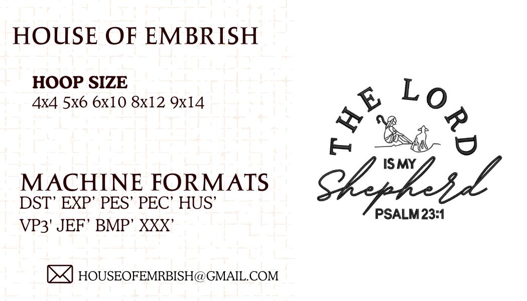 Share faith and inspiration with this beautiful The Lord Is My Shepherd Embroidery Design, featuring elegant lettering, a shepherd illustration, and the scripture Psalm 23:1. This timeless Christian design is perfect for church apparel, faith-based gifts, home décor, and meaningful embroidery projects.