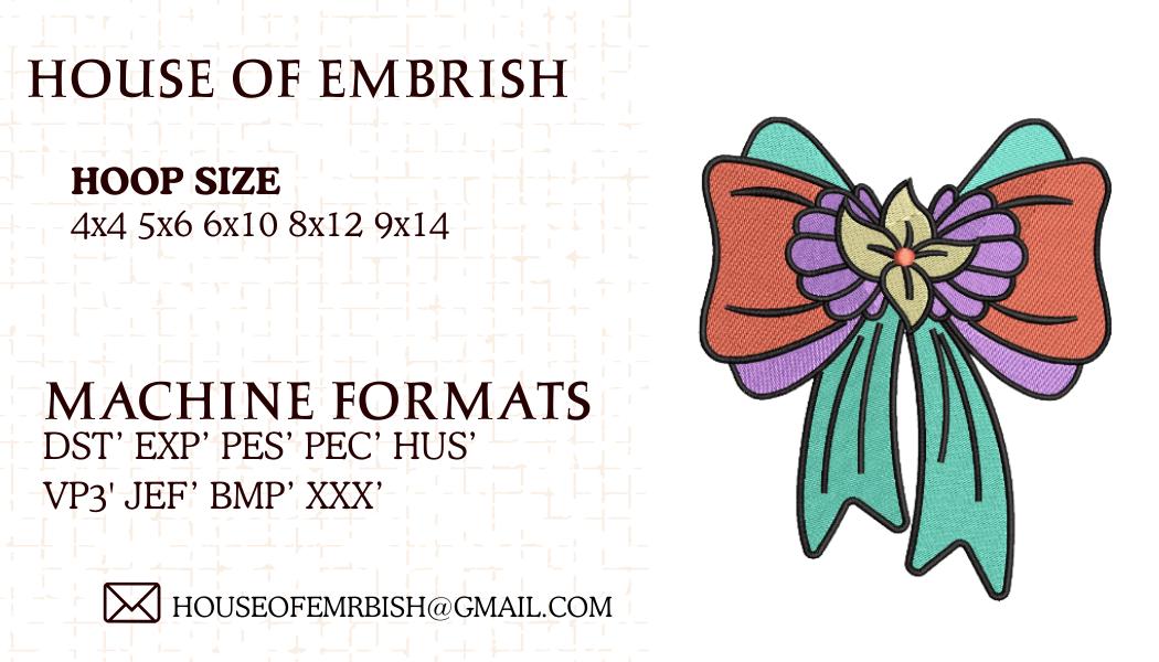 Add a cute and elegant touch to your embroidery projects with this Floral Bow Embroidery Design.