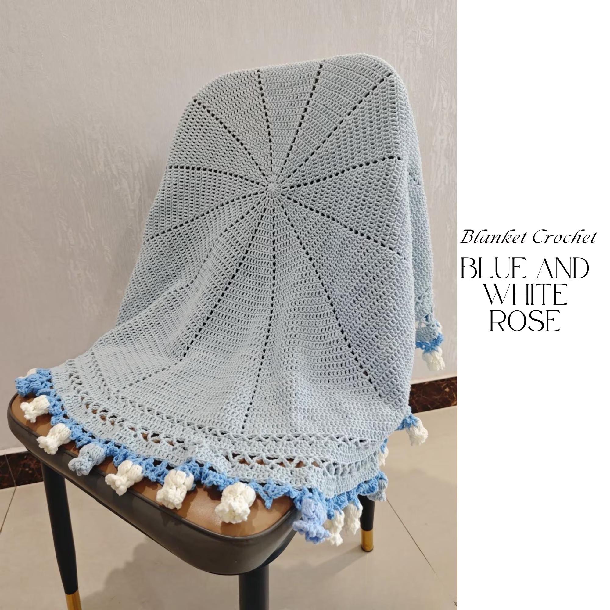 Create a stunning, textured floral blanket with this Blue and White Rose Crochet Blanket Pattern. This digital crochet pattern is designed for crocheters who love elegant, three-dimensional flower textures and eye-catching handmade blankets.