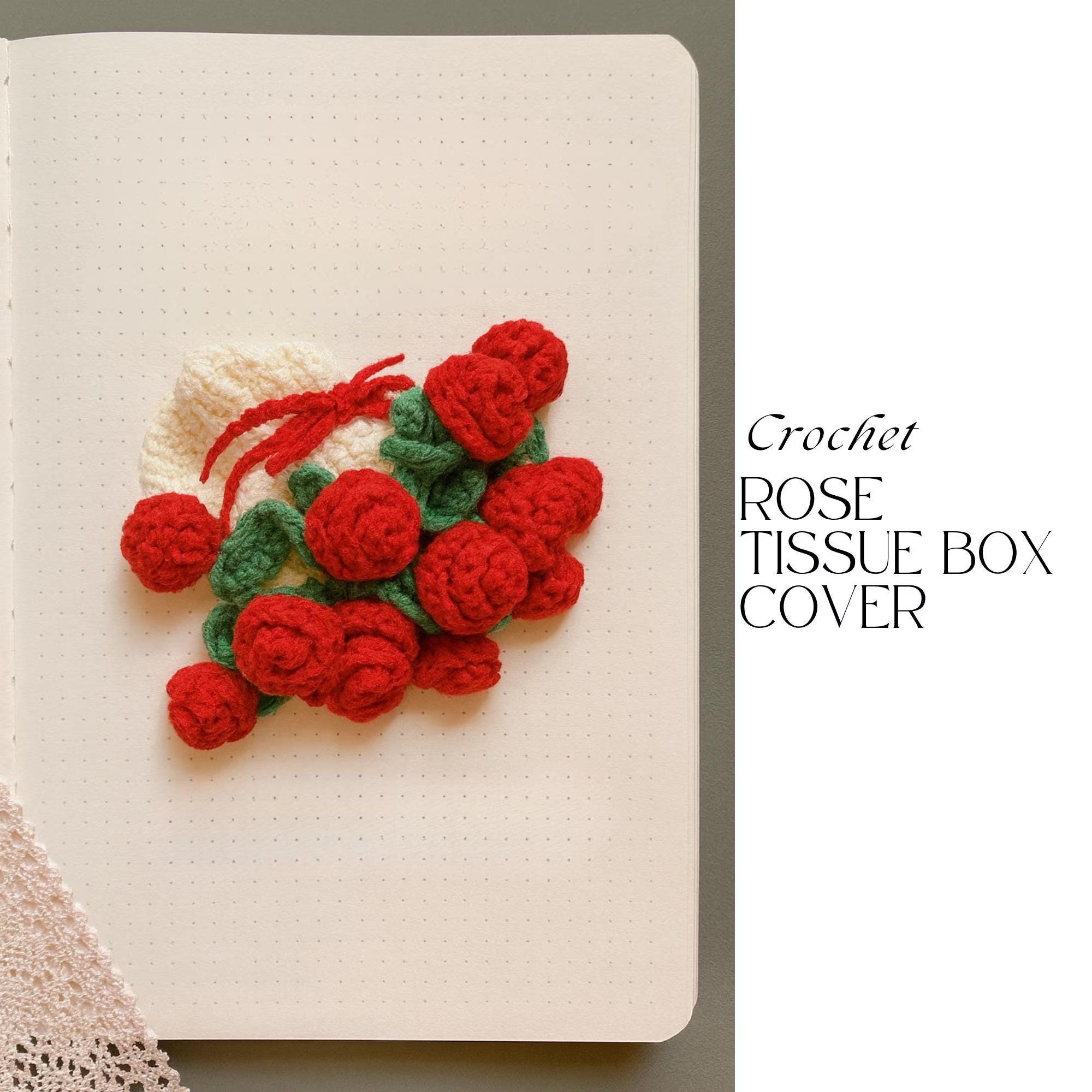 Add a touch of elegance and charm to your home with this Crochet Rose Tissue Box Cover Pattern. This digital crochet pattern guides you step by step to create a beautiful tissue box cover decorated with 3D crochet roses, green leaves, and a decorative bow, making it a perfect handmade home décor piece.