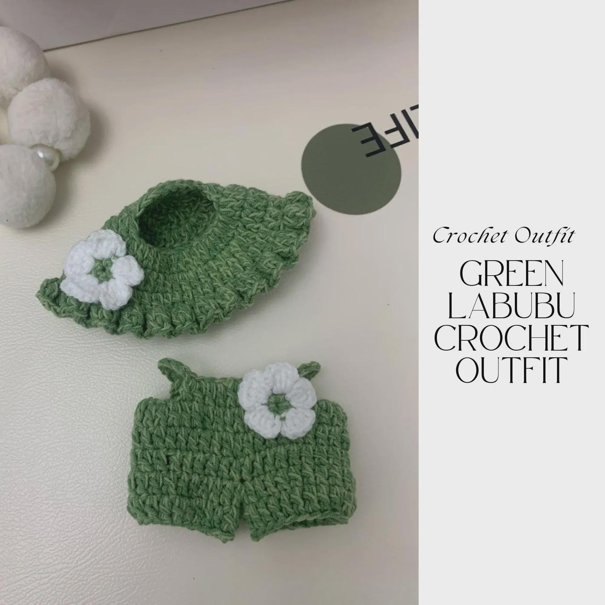Dress your Labubu-style doll in an adorable handmade look with this Green Labubu Crochet Outfit Pattern. This digital crochet pattern guides you step by step to create a cozy green outfit featuring cute floral details and a matching hat, perfect for collectors and doll lovers.